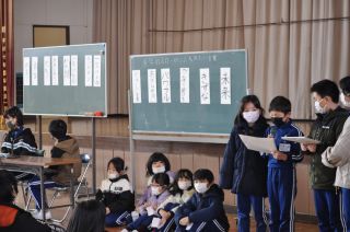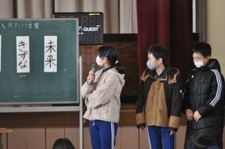 清掃班ごとに、出てきた言葉の中から、次年度に入れたい学校スローガンの言葉を決めました。