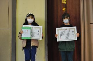 2月17日(金)の全校集会で、福島県書きぞめ展、喜多方市小学校農業科作文コンクールの表彰、共同募金感謝状の授与を行いました。子ども達のがんばりに大きな拍手を送りました。教職員も教育研究で賞状をいただきました。