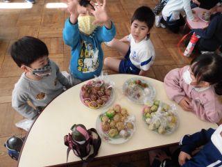 子ども達はさつまいもを自分たちで調理し、3色の茶巾絞りに仕上げました。