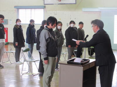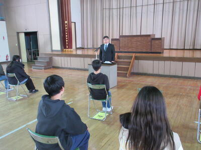 同窓会長さんより、入会する6年生に励ましの言葉と記念品(蛍光ペン)をいただきました。