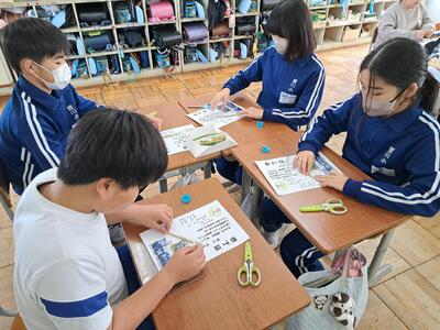 6年生が小学校での農業科の活動のまとめとして、農業科の修了証作りを行いました。