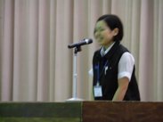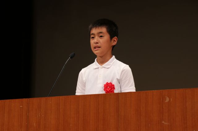 6年生の手代木壱吹君が「犯罪、非行のない地域社会づくり」と題して小学生代表として意見発表を行いました。犯罪、非行のない社会をつくるために、身近なことや相手を思いやることの大切さを訴えました。