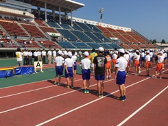 各地区の代表、約1500名が参加し、それぞれの競技で競い合いました。当日の気温は35℃以上の猛暑日、競技場は40℃以上になっていただろうと思います。そんな中、朝早くから本番に備えて練習をし競技に臨みました。一人一人が全力で走るすがたは素晴らしいものでした。リレーでは、会津予選会のタイムを約1秒短縮することができました。送迎ならびに応援に来てくださった家族の方々も暑い中お世話になりました。