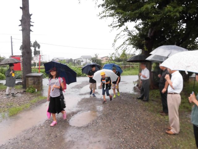 8月25日(金)。いよいよ,今日から第2学期の始まりです。朝の登校の時刻に,地域の方々が校門であいさつ運動をしてくださいました。明るいあいさつに,子どもたちも自然と笑顔になり元気に登校することができました。あいにくの雨でしたが,朝のあいさつ運動のおかげで心が晴れやかになり,第2学期のスタートにふさわしい朝となりました。ありがとうございました。