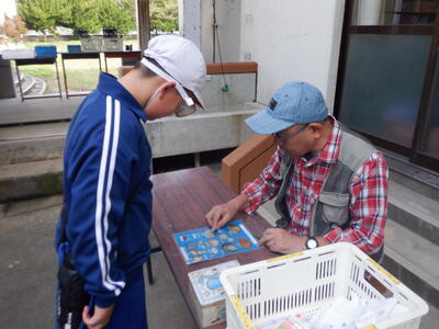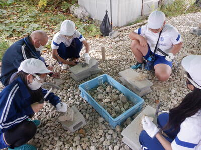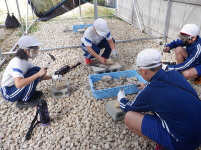 化石発掘体験では、塩坪層の岩石から化石を実際に発掘しました。