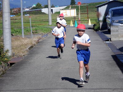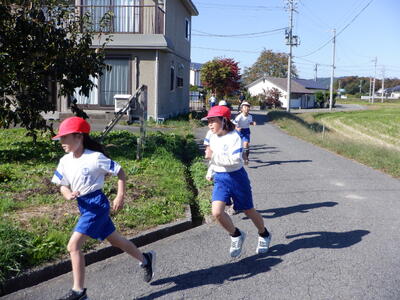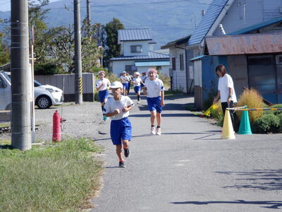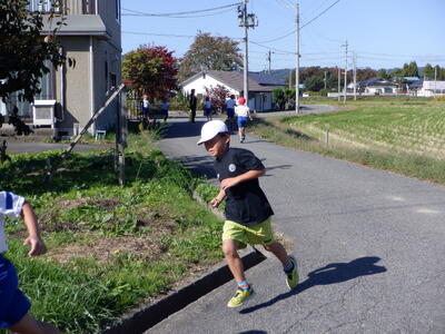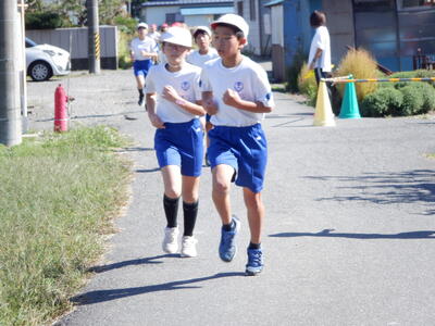 低・中・高学年に分かれて、実際のマラソンコースを走りました。