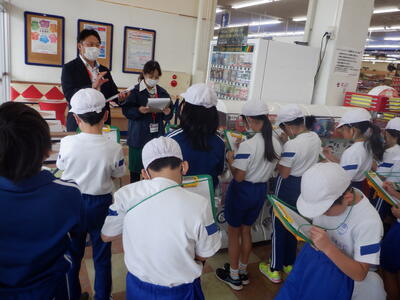 子供たちは、売れ筋商品やお客さん目線での陳列の工夫を教わりました。