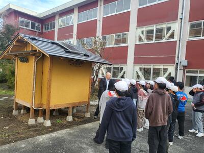 まずは、会津工業高校の学生が制作した茶室を見学しました。