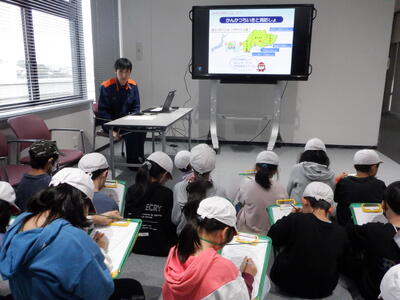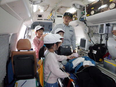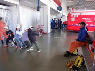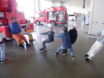 子ども達は火事や事故が起こったときに備えて、消防署の人たちが様々な訓練をしていることを学びました。