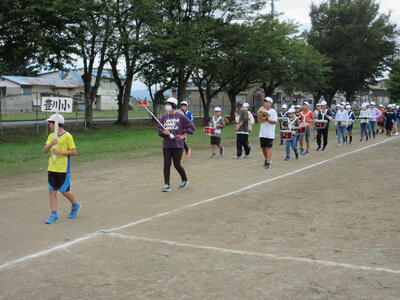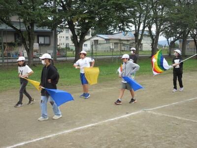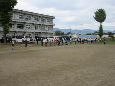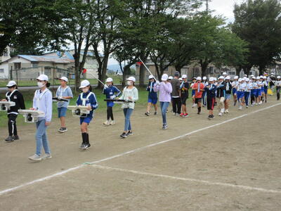 校庭を何周も演奏しながら歩きました。