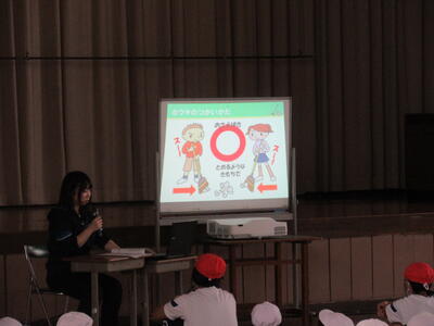 掃除の仕方の確認は、担当教員がポイントや注意点をパワーポイントで説明しました。