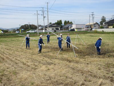 秋晴れの空の下、気持ちよく作業できました。