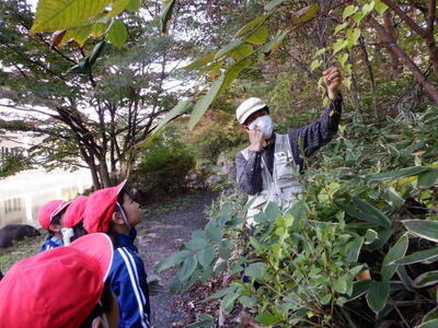春にお世話になった森の案内人の方を講師に招き、いろいろな秋の変化を教わりました。