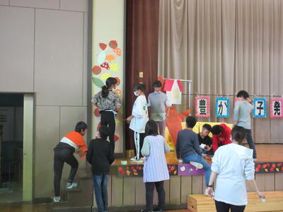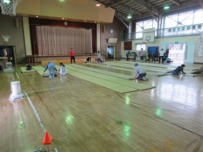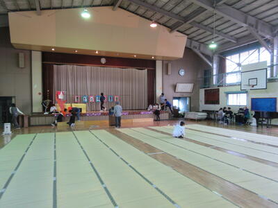 6年生が放課後、職員と一緒に会場準備を行ってくれました。