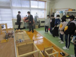 ・機械科では、自作ロボット見学・ラジコン操作体験