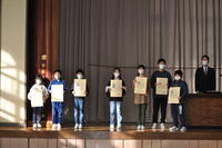 11月24日(木)の全校集会で家庭学習名人、緑化推進ポスター、納税標語コンクール、税に関する習字、耶麻地区図画作品、喜多方市文化祭の表彰を行いました。みんなで豊かっ子の活躍に拍手をおくりました。家庭学習名人週間は、意欲的に家庭学習を行う事ができた児童が多かったです。これからもしっかりと家庭学習に取り組んでほしいと思います。