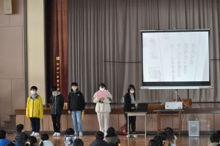1年、3年、5年、6年生の代表児童が、2学期に頑張ったことや心に残ったことなどを発表しました。