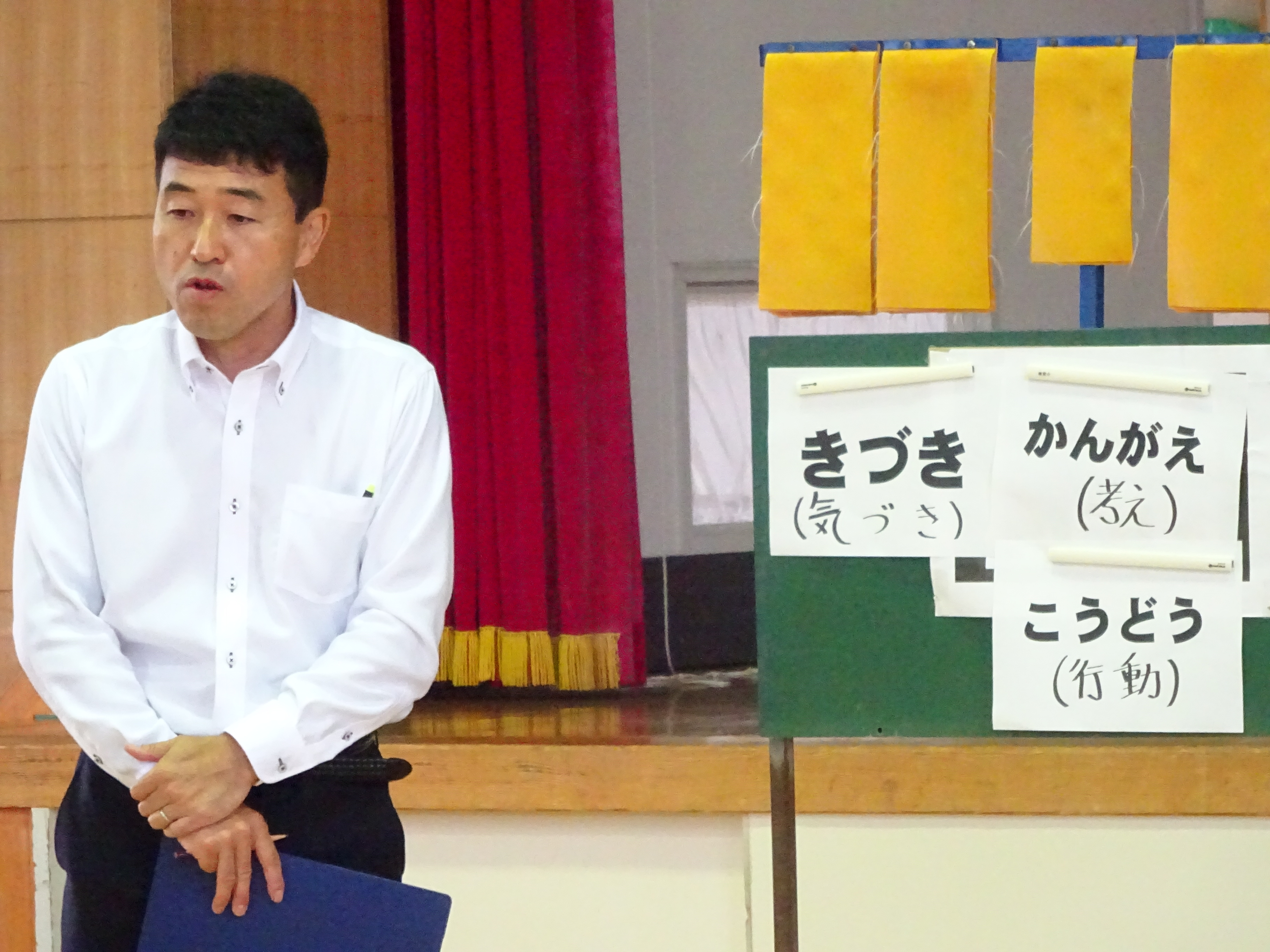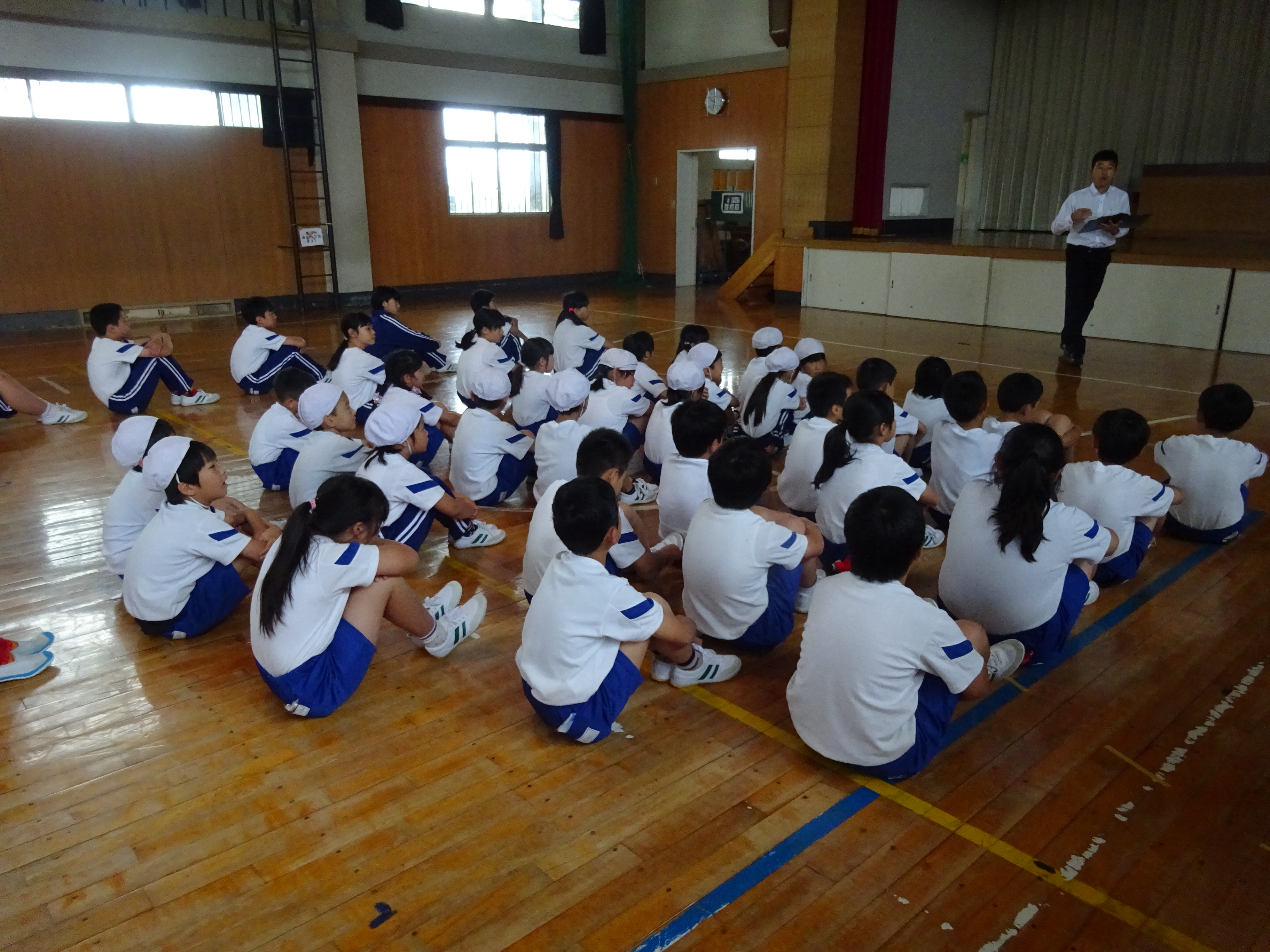2018年6月21日 10時58分6月21日に喜多方警察署より2名の講師の先生をお迎えして、第2回避難訓練(防犯教室)を行いました。教職員が、「さすまた」を使った不審者対応訓練を行いました。警察署の担当者から具体的な指導をいただきました。子どもたちは、体育館へ避難をした後、警察署の担当者から「防犯の合い言葉」である「いかのおすし」について指導を受けました。児童は「自分事」として考え、真剣に話を聞いていました。