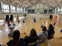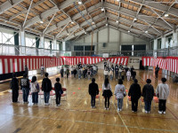 2年生が体育館で体育をしていました。みんな元気に走ったりとんだり、スキップやクロスステップなど、基本的な運動をしていました。
