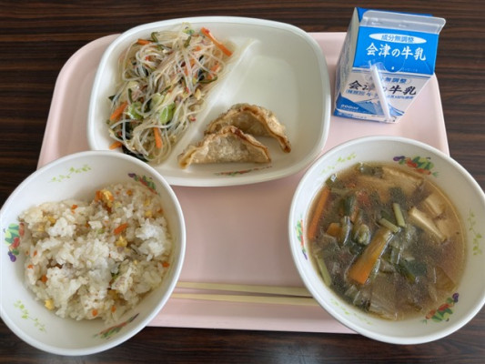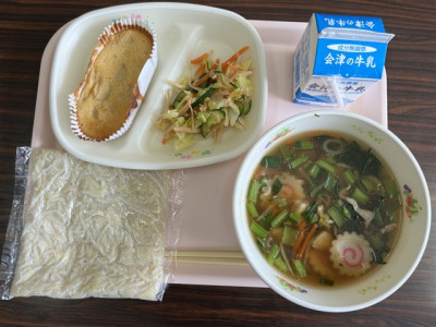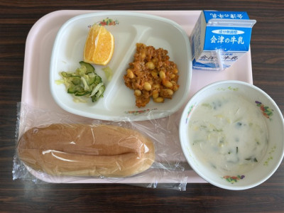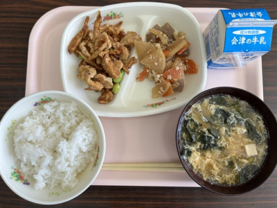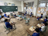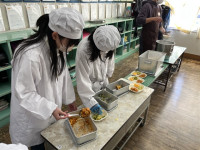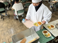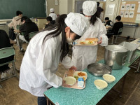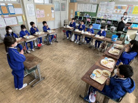 6年生の教室では、みんなでおいしい給食を食べていました。