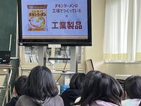 また、チキンラーメンが工場でどのようにして作られているのかを、ワークシートを使いながら予想したり動画で確かめたりしながら、工業製品としてのインスタントラーメンができるまでを学びました。