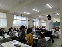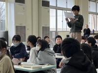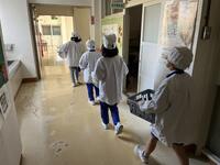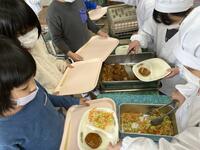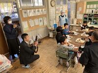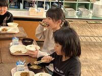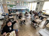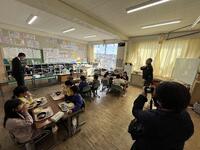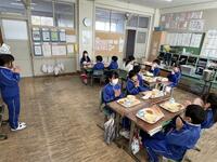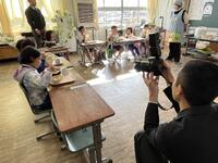 いわなの提供の様子は、阿賀川漁協の方をお招きして、子どもたちが食べている給食時間の様子を見ていただきました。また、2社の新聞社の方にも取材に来ていただきました。