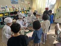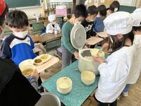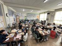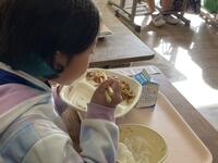 本とコラボ給食のメニューは、鬼まんじゅうです。リクエストしてくれたのは、4年生のKさんです。鬼の金棒をイメージしたという給食センター手作りの鬼まんじゅうは、角切りサツマイモが入った蒸しパンです。ゴツゴツした見た目はとてもこわくていかつい感じですが、サツマイモの甘さが感じられるおいしい蒸しパンでした。