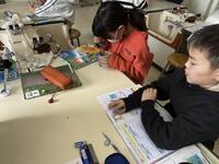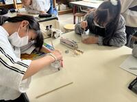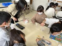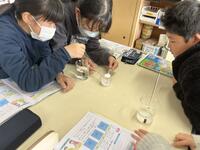 2024年11月27日 14時10分5年生が理科のグループ実験で、ビーカーの水を一生懸命にかきまぜていました。