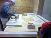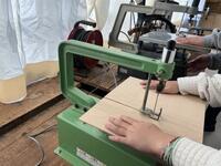 板の切り方が決まったら、次は糸のこぎりを使って切る作業に入ります。