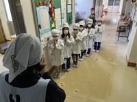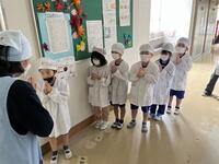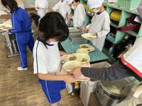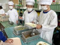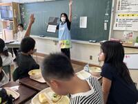 今日の主菜の「鶏肉のコーンフレーク焼き」は、給食センターによる手作りです。柔らかく調理された鶏むね肉の周りはカリカリのコーンフレークが香ばしく、子どもたちも喜ぶおいしさでした。