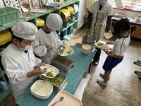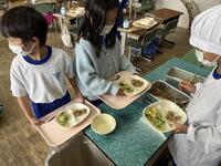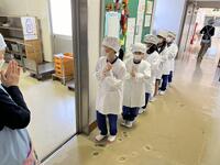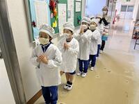 今日は本とコラボ給食です。絵本「いもほりバス」よりスイートポテトチップスが出されました。1年生のSさん、4年生のKさんからのリクエストです。お昼の放送では、栄養教諭から、絵本の冒頭部分の読み聞かせがありました。