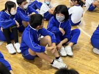 低学年でも取り組むことができる比較的簡単な「ボール運び鬼」やフラッグフットボールゲームの方法、作戦の立て方の例などを動画で視聴し、子どもたちは興味深く、説明を聞くことができました。
