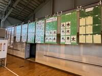 山都小学校からは書写の作品と絵画の作品が展示されています。今日は放課後に、作品展示作業を全職員で行いました。