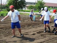苗に育ってておいたので、畑を耕し、元肥をくれて