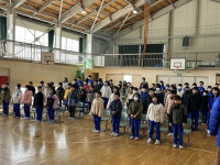 今朝は、全校集会を行いました。生徒指導担当から子どもたちへ、みんなが気持ちよく過ごすために考えてほしいことを話しました。