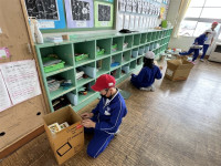 一人では難しいところは友達と協力し合いながら、ていねいに作業を進めていました。さて、どんな小物入れができあがるかな。
