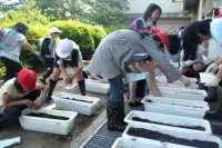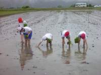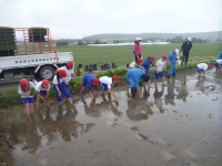小雨が降る天気でしたが、田植えを行いました。場所は千咲原の耶麻農高の田んぼです。耶麻農高の3年生に教えてもらって植えました。5年生は秋に稲刈り体験を行います。