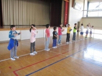 運動委員会は、運動会へ向けてラジオ体操の練習です。