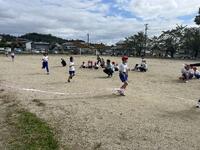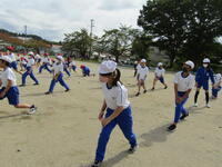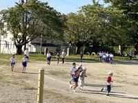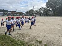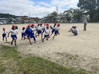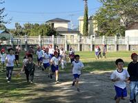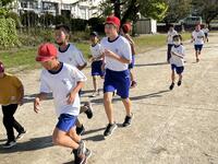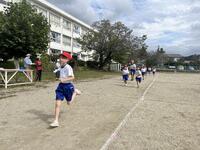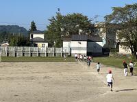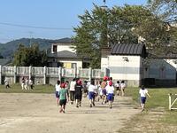 2024年10月2日 17時00分山都チャレンジランニングがあと一週間後に迫ってきました。今日も全校児童が朝の校庭で、音楽に合わせて持久走に取り組んでいます。