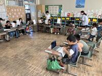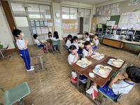 昨日(2日)は、ICT支援員の方々のサポートも受けながら、1年生一人一人が給食アンケートに答えました。