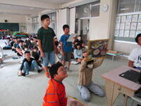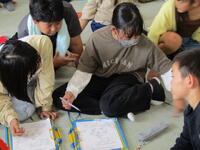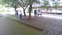 山都中学校さんに了解をもらって、校舎前の森を散策しながらどんぐり探しをしました。