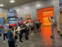 オートメーション化された工場内で、いろんなロボットが仕事をしながら大量の玄米が精米される様子を、子どもたちは間を丸くしながら見学しました。