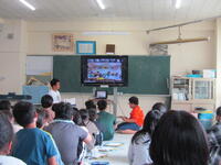 オンラインによる授業を、5つの小学校が同時に授業を受けながら、子どもたちは、株式会社カプコンの仕事内容や、ゲームとの上手につきあうためのスキルなどについて学習しました。
