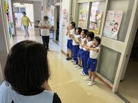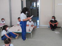 続いて、後期の縦割り班の顔合わせが行われ、自己紹介や清掃場所の確認などを行いました。