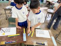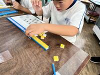 子どもたちは自分の考えをブロックに表したり友達と話し合ったりしながら、10より大きい数の数え方や唱え方を学習しました。