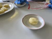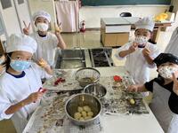 27日、2年生が生活科で育てたジャガイモを使って、ジャガイモ餅作りに挑戦しました。
