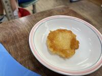 こんがりきつね色のポテト団子を、今日のお弁当と一緒においしくいただきました。