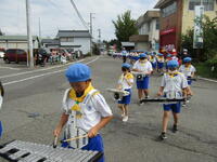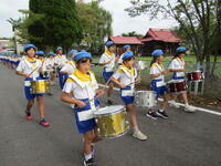 出発式では、正指揮者の児童から交通安全への誓いの言葉が堂々と述べられました。また、パレードでは、沿道でのたくさんの応援を受けながら、1~6年生のみんなの息の合った力強い演奏を地域の方々にお届けすることができました。