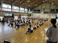 初めに、耶麻地区理科研究物展、読書感想文コンクール、耶麻地区小学校陸上大会で、受賞したお友達への賞状伝達を行いました。それぞれのお友達の頑張りに、全校生から温かい拍手が送られました。