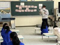 栄養教諭による教室訪問では、今日のメニューに使われている昆布に関するクイズが出されました。